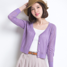 针织衫开衫毛衣女薄款春夏装短款圆领冰丝镂空修身外搭空调衫线衣