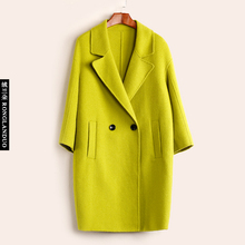 韩版茧型羊毛呢外套九分袖女装双面绒羊毛大衣中长款高端羊毛大衣