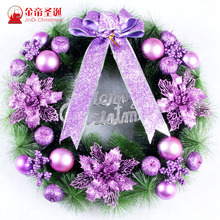 圣诞节装饰品花环 圣诞花环门挂饰 圣诞松针蝴蝶结50cm紫色花环
