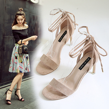 凉鞋女夏2017新款韩版露趾细跟高跟鞋百搭交叉带罗马凉鞋学生女鞋