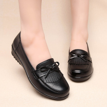 春季妈妈鞋真皮单鞋大码女鞋41-43中年中老年皮鞋平底流苏女士鞋