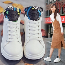 皮面小白鞋女2016新款百搭运动鞋女韩版2017厚底学生跑步松糕鞋绿
