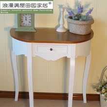 欧式田园简约实木半圆桌象牙白色花架装饰柜电话架置物架包邮