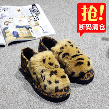冬季新款女鞋兔毛豹纹圆头压线低帮鞋休闲韩版鞋棉瓢鞋潮鞋