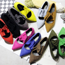 欧美春季新款女鞋尖头平底低跟系带低帮鞋单鞋绒面休闲鞋百搭潮鞋