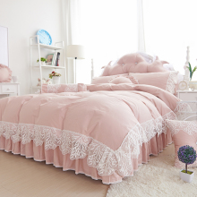 新款包邮韩式粉色公主梦幻全棉花边四件套纯棉蕾丝床罩床裙床品