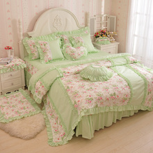 新款韩版全棉纯色四件套 纯棉蕾丝公主床上用品 绿色梦幻床裙包邮