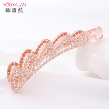幽雅蓝韩国水钻竖夹八字凤尾锁心马尾香蕉夹发卡子发饰头饰品包邮