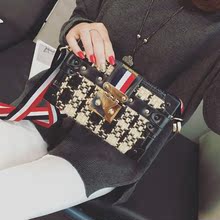 小包包小方包2016新款日韩版撞色锁扣包盒子包织带女包单肩斜挎包