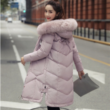 2016新款羽绒服女中长款加厚韩国正品大码修身连帽大毛领鸭绒外套