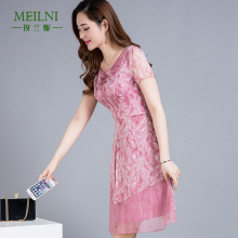 2017夏装新款复古改良旗袍韩版显瘦中年女装中长款短袖连衣裙女