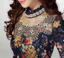 修身蕾丝女式高领秋衣长袖加绒加厚打底衫女春秋冬款大码紧身t恤