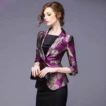 2016新款休闲七分袖女士春秋季印花小西装大码外套西服短款妈妈装