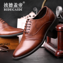 彼德盖帝新款男鞋 商务休闲皮鞋男士尖头皮鞋 英伦正装真皮透气鞋