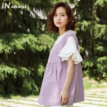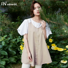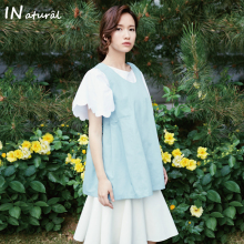 pue by INatural/以然 孕妇装春夏白色荷叶袖上衣 天然简约宽松