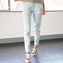 浅色破洞牛仔裤女宽松2016夏韩版九分裤显瘦乞丐裤休闲哈伦裤bf风