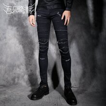 2017春装新品休闲乞丐裤时尚休闲小脚裤男潮男显瘦紧身破洞牛仔裤