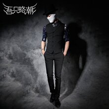 男士修身长款美发师个性服装潮男不规则韩版马甲黑色夜店风马甲