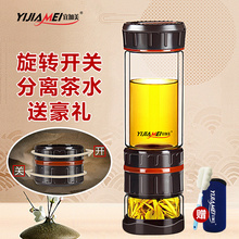 宜加美旋转式茶水分离泡茶杯双层玻璃杯大容量男士便携过滤水杯子