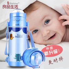 良品生活正品不锈钢儿童保温杯子宝宝学生带吸管保温背带防漏水壶