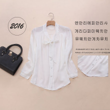 16新欧洲站高端定制100%桑蚕丝真丝双绉蓝色大蝴蝶结长袖衬衫衬衣