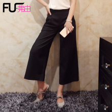 夏新款黑色棉麻阔腿裤九分裤时尚休闲裤高腰宽松大码女裤七分裤潮