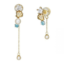 INK珠宝美人鱼系列银镀金多流苏珍珠耳钉日韩可爱童趣耳饰
