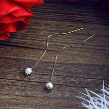INK珠宝 美人鱼系列银镀金单流苏珍珠耳钉/耳夹 日韩