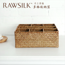 田园藤草编收纳筐 零食杂志杂物手工编织储物盒 衣物篮整理箱特价