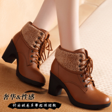 秋冬季女鞋粗跟短靴棉鞋欧美真皮保暖加绒高跟马丁靴雪地靴子