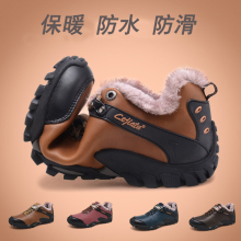 冬季男士棉鞋加绒保暖低帮防水鞋户外休闲雪地鞋真皮大码二棉鞋