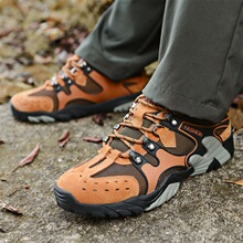 乐嘉途春季新款男士真皮休闲鞋低帮情侣大码户外登山鞋防滑徒步鞋