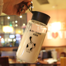 可爱小猫时尚玻璃杯便携随手小型迷你个性随手水杯男女士学生杯子