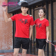 运动短袖套装新款羽毛球服男女情侣款运动T恤透气训练服