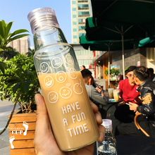 夏季创意萌表情便携防漏玻璃男女学生简约时尚字母水瓶随行手杯子
