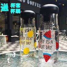 GD韩版夏日花茶玻璃杯女士学生大容量防漏耐高温创意柠檬随手水瓶