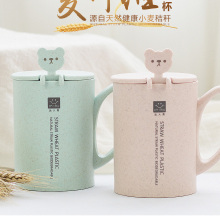 韩国麦纤维健康马克杯创意可爱的水杯咖啡学生家用耐热杯子带盖勺