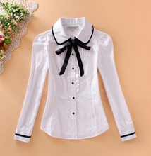 2017秋装新小熊淑女木耳花边中学生少女白长袖打底衬衫衬衣女大码