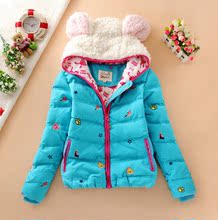 2016可爱兔耳朵外套短款小款轻薄款羽绒服女士中学生连帽少女冬装