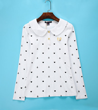小熊2017秋装英伦学院风刺绣娃娃领少女学生长袖衬衫女衬衣打底衫