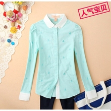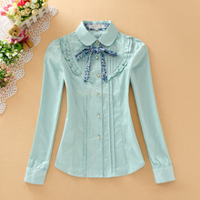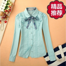17春装新款少女中学生公主花边长袖衬衫淑女娃娃领修身打底白衬衣