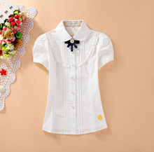2017夏季女装学院风纯棉衬衣韩范修身小熊花边短袖衬衫女学生白色
