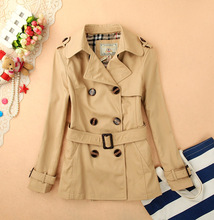 17韩版小熊英伦学院春新品 经典双排扣修身百搭中短款风衣外套女