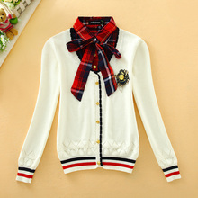 2016春冬新款少女学生小熊英伦学院风V领全棉针织开衫毛衣外套