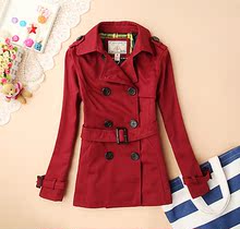 2016春装新款 小熊学院款女装修身外套女式翻领双排扣短款风衣潮