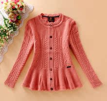 2016秋冬季新韩版小熊维尼长袖裙摆式羊毛针织开衫毛衣外套女正品