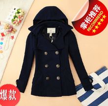 2016冬小熊英伦学院风短款带帽羊毛呢呢子外套大衣女正品同款代购