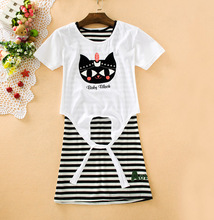 2017韩版小熊维尼英伦学院风少女初中学生飞飞短袖中长款连衣裙夏