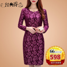 经典诗兰婚宴妈妈装结婚婚庆婚礼妈妈装长袖蕾丝连衣裙礼服春装