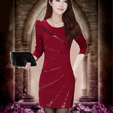 2017时尚春装大码3040岁职业裙修身显瘦包臀连衣裙长袖蕾丝妈妈裙
